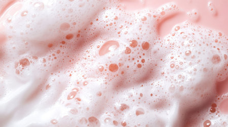 White shampoo lather cascading down a pink surface, offering a clean, modern beauty theme.