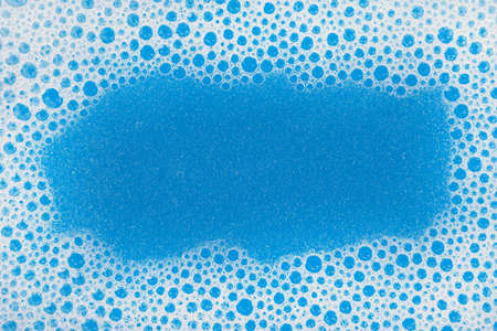 Soap foam. Background of dusty foam with bubbles of blue color for an inscription. Soap sud with copy-space