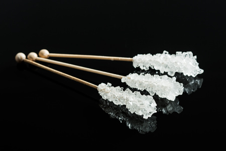 White sugar crystals, light view. Used to sweeten desserts and drinks, it is obtained from sugar cane and beets.