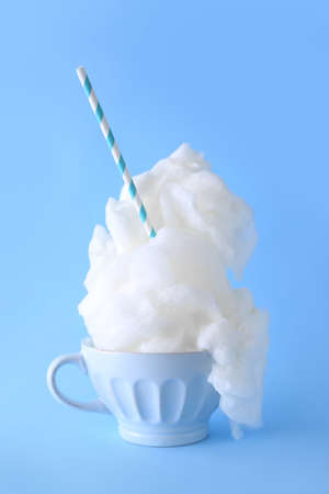 Outline of clouds on light blue background made by powdered suger as an abstract concept for food or weather