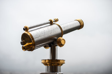 Telescope tower viewer viewing magnifier at mont saint michel chrome gold ocean view castle tower