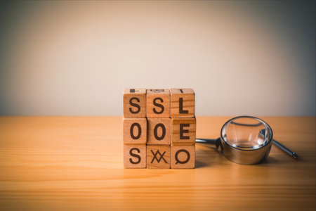 Unlocking SEO Success: Exploring Strategy, Advertising, and Content Concepts with Wooden Cube Blocks and a Magnifying Glass