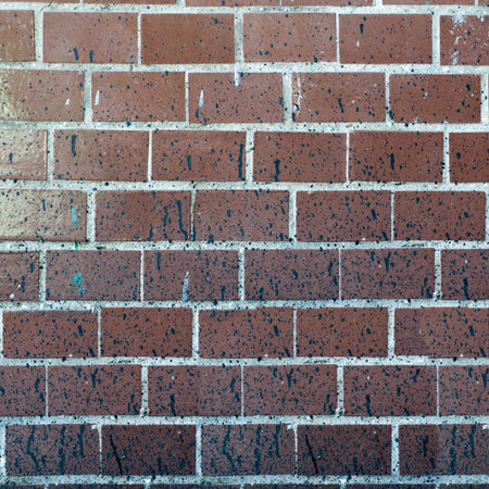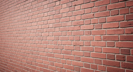 Detailed close-up of a weathered red brick wall with visible mortar, showing rustic textures and urban architectural charm.