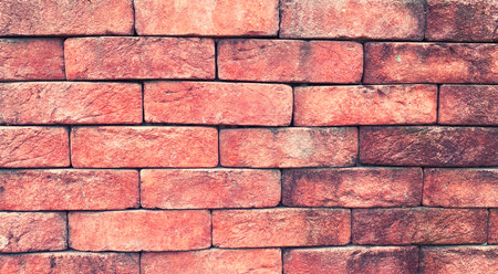 old dirt red bricks wall background pattern at outdoor sunrise