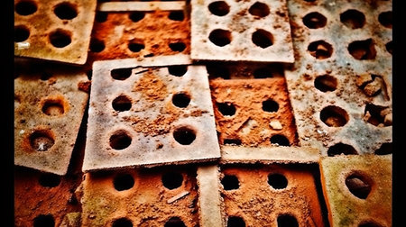 Closeup view of bricks with holes studio shot