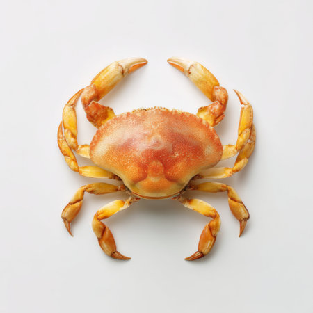 A stunning fresh orange crab displayed on a clean white background. Perfect for culinary, seafood, or healthy eating themes in food photography.