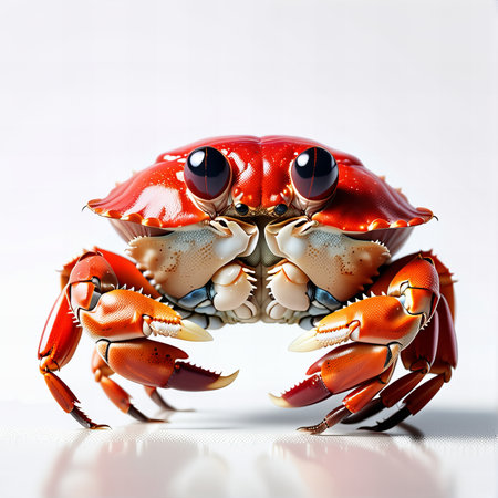 This vibrant red crab is showcased against a pristine white background, highlighting its unique texture and details, perfect for culinary and nature themes.