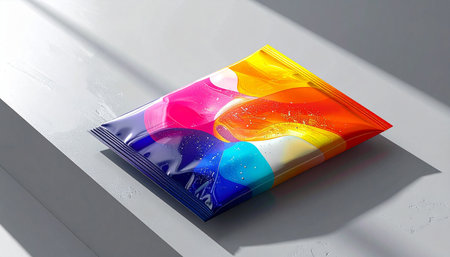 A vibrant blue background enhances the focus on a neatly arranged packet, showing an attractive design that draws attention to the product inside, emphasizing simplicity and modern aesthetics.