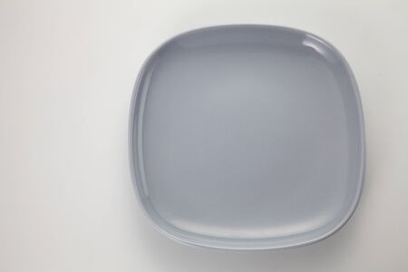 Top view of isolated of colored background empty square black plate for food. Empty dish with space for your design.