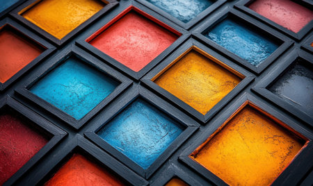 A vivid array of colorful geometric tiles showcases a harmonious blend of hues, perfect for creative projects, backgrounds, or art displays.
