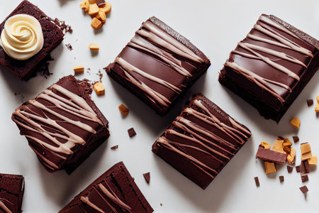 AI Generated. A top view of a crumbled brownie filled with chocolate