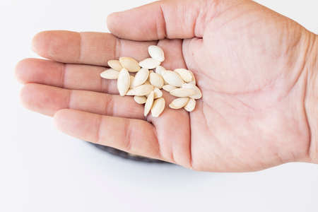 pumpkin seeds for planting on white background