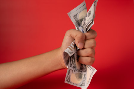 People holding many hundred dollar bills and banknotes for money saving, American dollars, Cash money dollars, Business investment and income, Global financial crisis, Earning and saving money concept