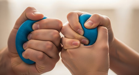 A hand clenches tightly expelling water droplets in a dynamic burst against a dark background creating an energetic and captivating moment.