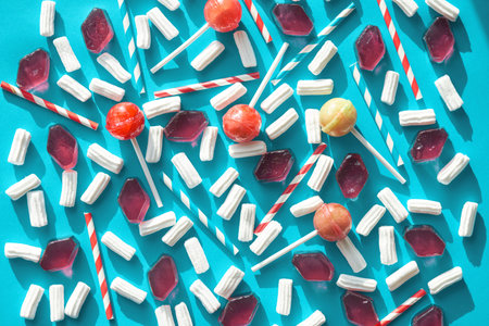 Still life of colorful candies. Flat lay