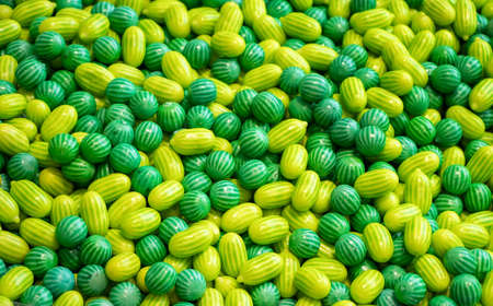Different colorful bright assorted candy in the sweets shop for background