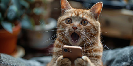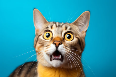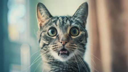 Crazy surprised cat make big eyes. Emotional funny cat looking shocked. Generative AI illustration