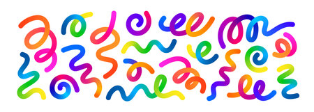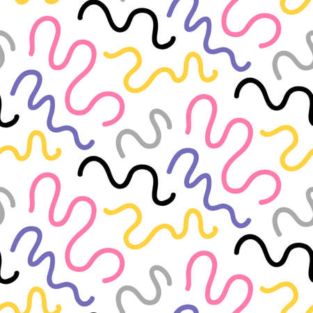 Squiggle lines, shapes and patterns in child friendly design. Fun and colorful abstract background for kids. Flat vector illustration isolated on white