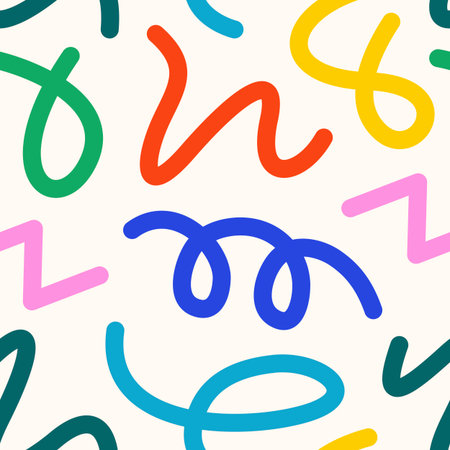 Abstract pattern, seamless doodle background design. Modern lines, curves, playful geometric elements texture, endless repeating print. Creative flat vector illustration for textile, wrapping