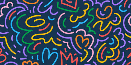 Fun line doodle seamless pattern creative flat abstract shape vector illustration