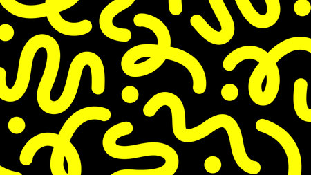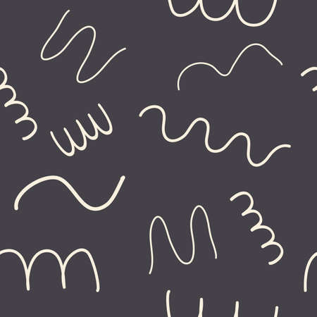 Fun line doodle. abstract squiggle style handdrawn seamless pattern isolated on black background