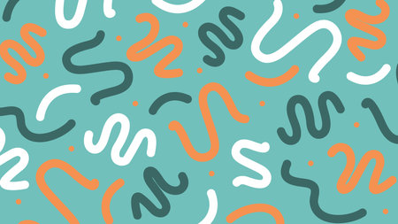 Hand-drawn abstract squiggles in white, orange, and dark green on teal. Perfect for modern, playful, and youthful design compositions.