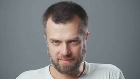 Happy smiling bearded man portrait. People emotions, face exspression.