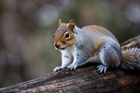 Close up of a squirrel on wood