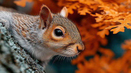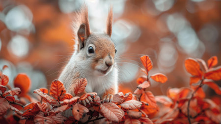 Squirrel posing in forest during autumn season