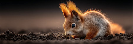 Adorable red squirrel scurrying through soil, collecting fallen seeds for its winter stockpile.