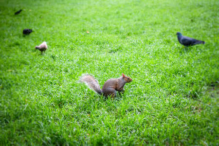 Squirrel in the park. Sciurus carolinensis. Wildlife scene from nature.