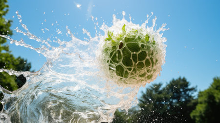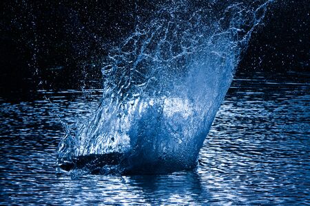 A high-speed capture of a dynamic water splash against a dark background, creating a bold and energetic visual.