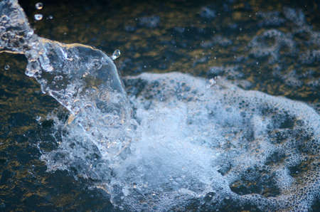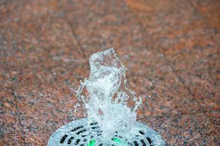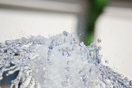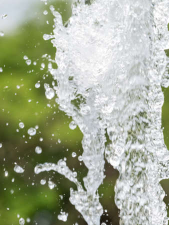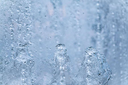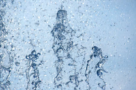The gush of water of a fountain. Splash of water in the fountain, abstract image. bokeh of blue water
