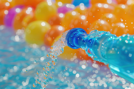 Close-up of a water pistol shooting with splashes, capturing the dynamic movement