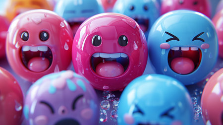 Close-Up of Brightly Colored Emoji Balls Laughing With Drool