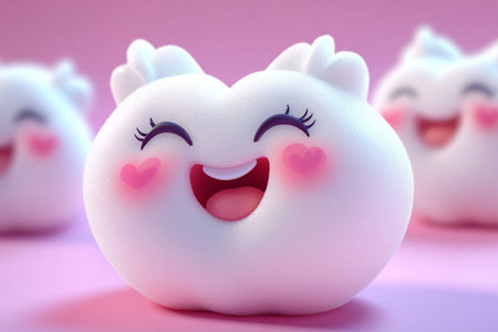Adorable Happy Blob Emoji in Blurred Background, Representing Kindness and Joyful Emotions