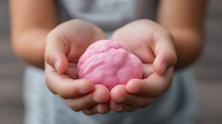girl holding pastries from dough with both hands being in nature. high quality photo