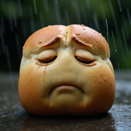 Mournful crying bread in pouring rain Disappointed Sandwich