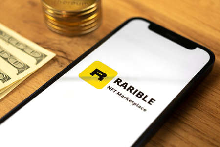 Kharkov, Ukraine - December 20, 2021: Rarible NFT marketplace open on mobile phone screen photo