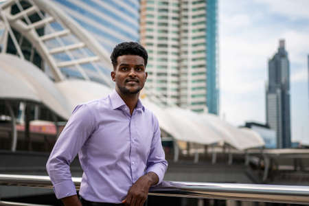Portrait of young handsome indian man in Bangkok, Thailand.