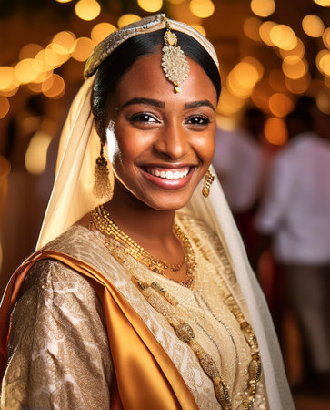 Portrait of a beautiful indian woman in traditional clothes smiling at the camera