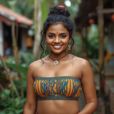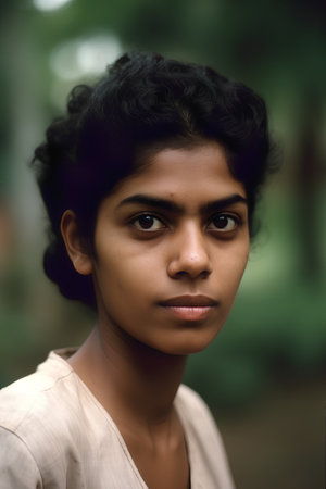 Colorful portrait of Indian young woman looking at camera. Generative AI