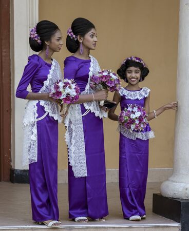 COLOMBO, SRI LANKA - JANUARY 18, 2014: Unidentified bride at the street of Colombo. Typically, Sri Lankans marry later than people in other Asian countries. average age of marriage is 25 years old.