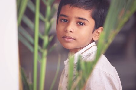 Portrait of Indian Little Boy Posing to Camera with Expression