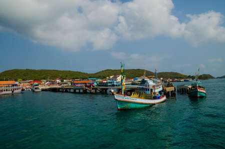 SAMAESARN ,THAILAND - SEPTEMBER 24 , 2015 : The view of fishing villages in nature blue sea in sunshine day at Samaesarn Sattahip, Thailand 24, 2015