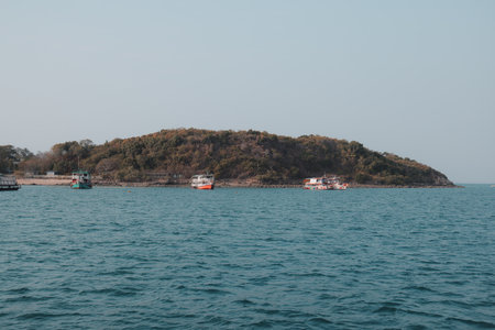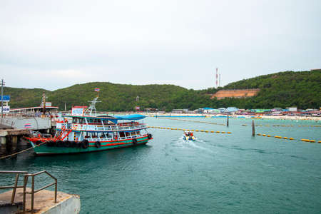 Chonburi/Thailand - 20 apr 2019:Tropical Idyllic Ocean and Boat on Koh lan Island in vacation time. Koh lan island is the Famous island near Pattaya city the Travel Destination in Thailand,Thailand holiday concept