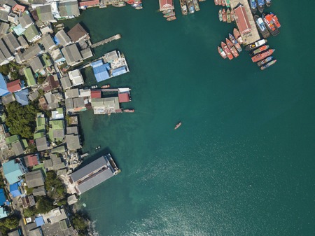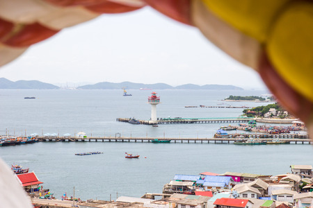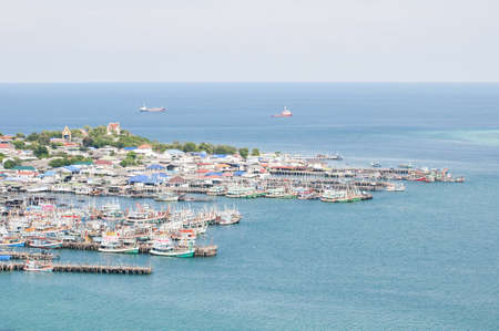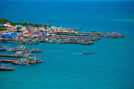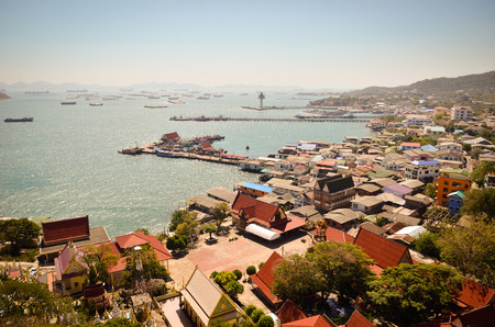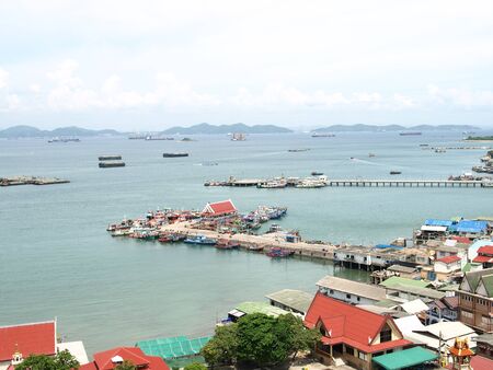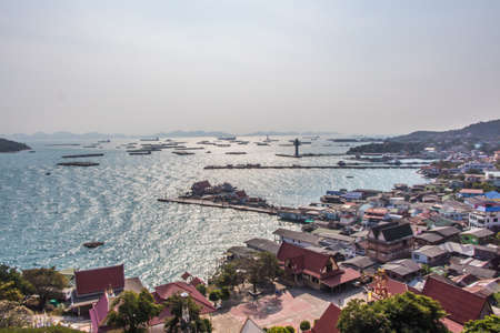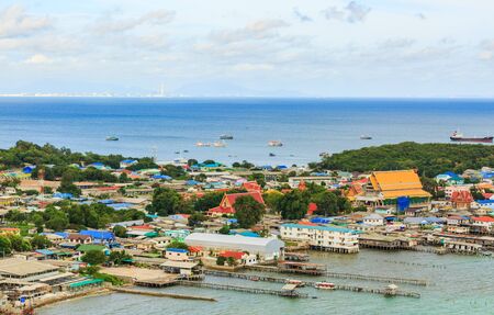 Top View of the fishing village from the Khao Ma Cho is a hill, in Sattahip District, Chon Buri Province, Thailand.