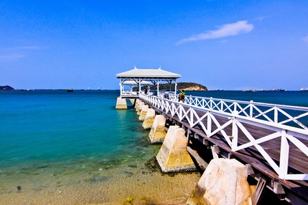 Atsadang bridge White wood bridge at Ko Si Chang Thailand.