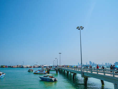 Chonburi/Thailand -20 apr 2019:Crowd of people walking on Bali Hai Pier in Pattaya city.Bali Hai Pier the harbor transit between Pattaya and Koh larn island