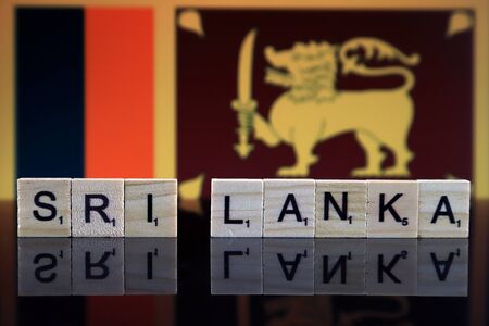 Sri Lanka Flag and country name made of small wooden letters. Studio shot.